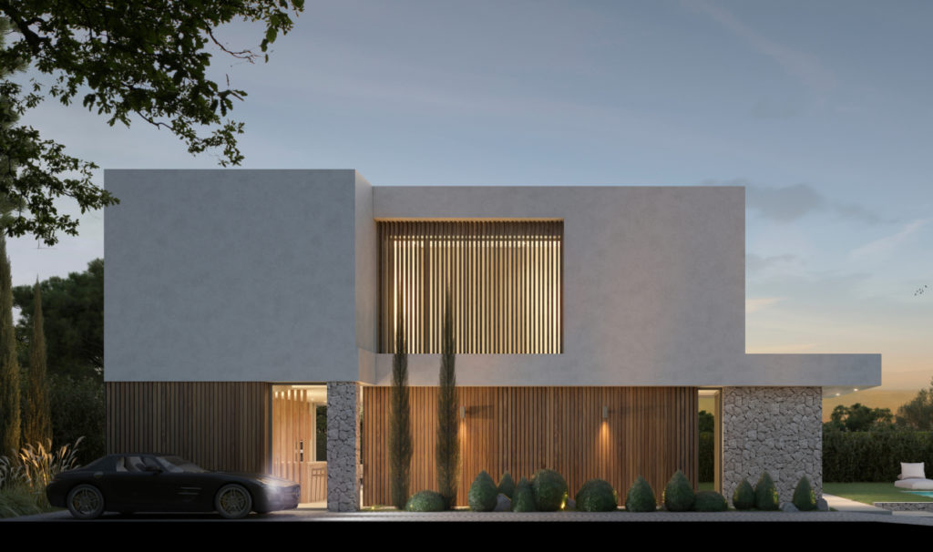7 villas de luxe avec grands jardins et piscine à Mijas, Malaga. Les maisons de plus de 300 m2 sont construites sur des parcelles d’environ 500 m2.