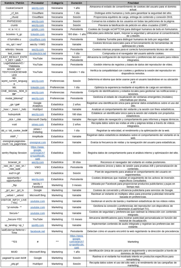 Ai sensi dell’articolo 22.2 della Legge 34/2002, dell’11 luglio, sui Servizi della Società dell’Informazione e del Commercio Elettronico (LSSI-CE), CITYPRIVE PSFP, S.L.U. informa sui cookie utilizzati nel nostro sito web: