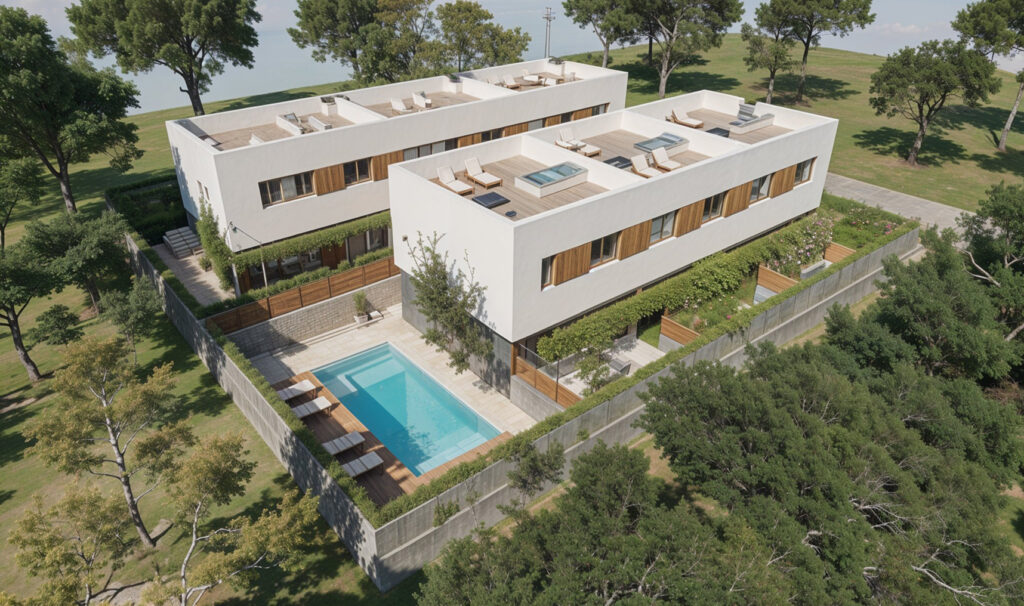 Las viviendas contarán con 98,4 m2 construidos y tendrán 3 habitaciones, 3 baños, terraza, y una piscina comunitaria. El proyecto cuenta con Licencia de Obra concedida, y el promotor ya ha iniciado los trabajos previos de la obra (excavación, limpieza y desbroce del terreno). A nivel comercial, el promotor cuenta con 2 ventas, y el precio de venta de cada vivienda es de 620.000 €.